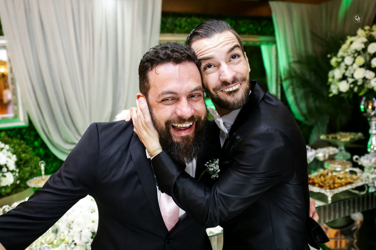 Mas não culpo o Gabriel pelo erro. E justifico, ele errou porque não estava REALMENTE prestando atenção nas palavras que o celebrante proferia (risos). Não por não estar atento, mas por não conseguir tiras os olhos, nem por um segundo da Pamela. Deu para sentir e perceber que ele estava no mundo dele, e era isso que importava nesse momento. Ele estar ali e dizer sim para tudo que se fosse perguntado, por que o que importava realmente ele estava segurando nas suas mãos.